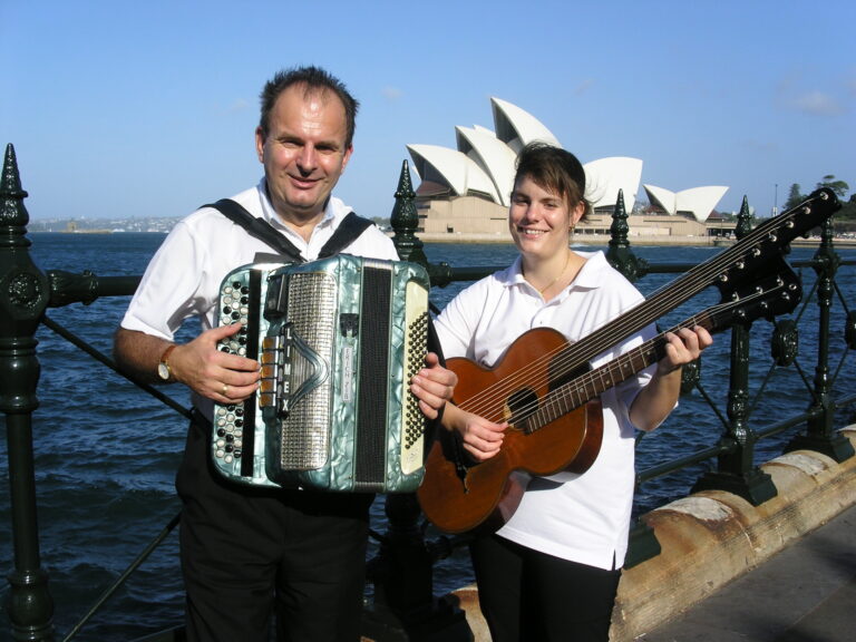 In traditioneller Besetzung mit Harmonika und Kontragitarre glänzen die beiden Ur Wiener mit Scharm, Schmäh und einem unglaublich großen Repertoire an Wienerlieder, da sich die beiden perfekt ergänzen. Das Programm reicht vom traditionellen Wienerlied bis zu Evergreens und Schlager. Hier ein kurzes Video vom Auftritt in der Wienerliedschule Tokyo